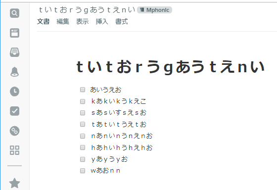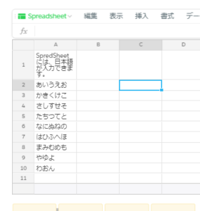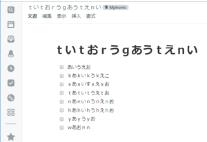 Chrome × Windows10 の組み合わせを試したところ、タスクリストや本文の日本語入力時に母音「あいうえお」しか入力できないおかしな現象になりました。すべて入力できないかというと、そうでもなくSpredSheetはChromeからも日本語を入力できました。下のような現象になった方は、ブラウザを変更してみましょう。