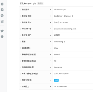 Salesforceの取引先情報をQuipへ挿入すると下のような感じになります。